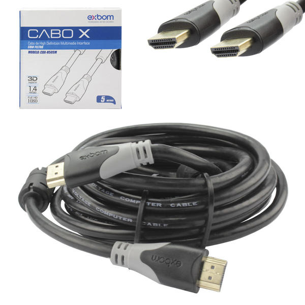 Cabo HDMI 1.4 Com Filtro Sem Malha Conectores Banhados Full HD1080 5 Metros EXBOM CBX-H50SM CBX-H50SM EXBOM