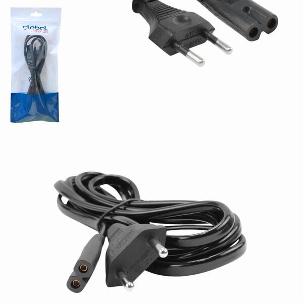 Cabo de força para diversos equipamentos como fonte de força de notebook, receptor Sky, Playstation 2 Slim e outros com conector compatível. Pode ser utilizado em 110 ou 220 V. Compatível com o novo padrão de tomadas brasileiras.