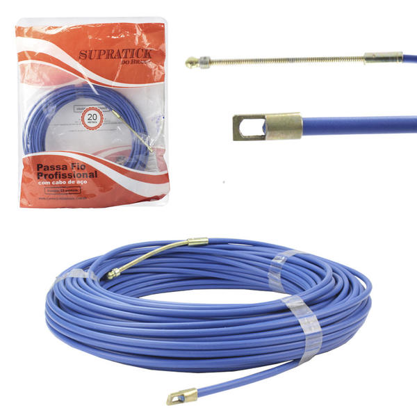 1 Passa Fio Profissional Com Cabo De Aço Azul 20 Metros SUPRATICK.