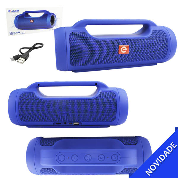 Caixa De Som Bluetooth 6W Soundbox Speaker com TWS FM P2 USB SD Mic Duplo Auto-Falantes com Alça Azul EXBOM CS-M70BT CS-M70BT EXBOM