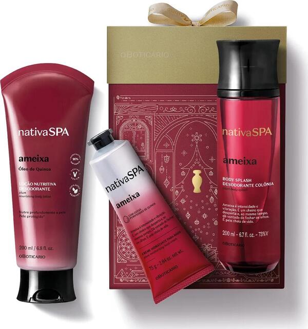 ESTOJO NSPA AMEIXA NATAL 2024 (3) ITENS. SPA LOÇÃO HIDRATANTE 200ML - BODY SPLASH 200ML - CREME HIDRATANTE PARA MÃOS 75G 5846111 O BOTICARIO