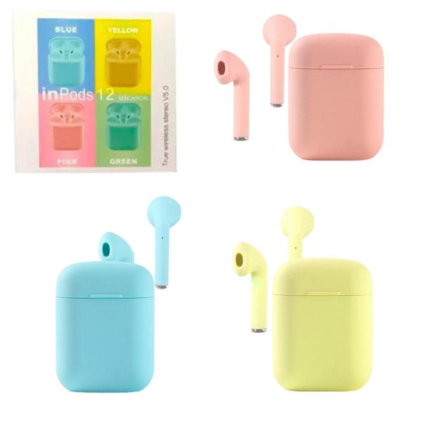 Fone De Ouvido Sem Fio 5.0 Iphone Bluetooth Wireless Com Base Carregadora e 1 Capinha de Silicone Cores Sortidas INPODS I12 GENERICO