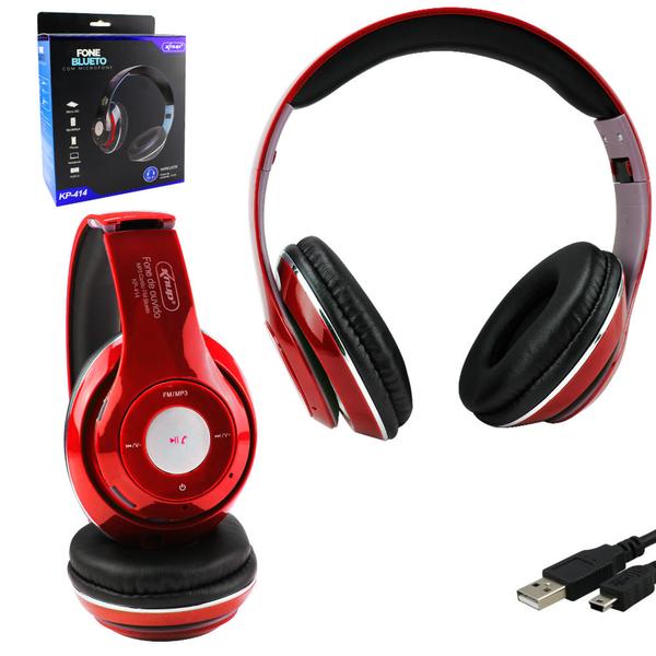 Headphone Bluetooth 2.4 P2 SD Card FM Mp3 Vermelho KNUP KP-415 KP-415 KNUP