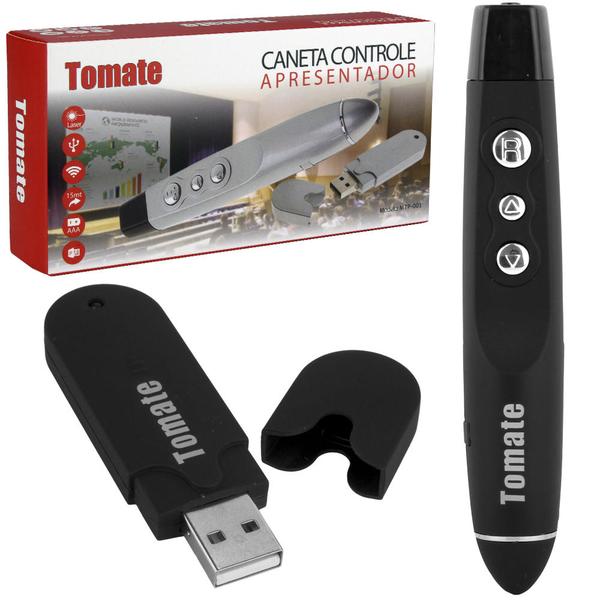 Design moderno e compacto, com alcance de até 15 metros de distância do computador. Apontador laser para identificar pontos importantes nos slides Interface USB 2.0