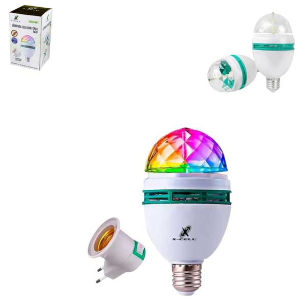 Lâmpada Led Giratória Colorido RGB Com Adaptador XC-LL-02 X-CELL