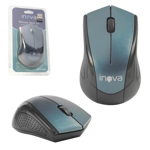 Mouse Óptico Azul Sem Fio Usb 3.0 Led vermelho 1000 Dpi MOU-8609 INOVA