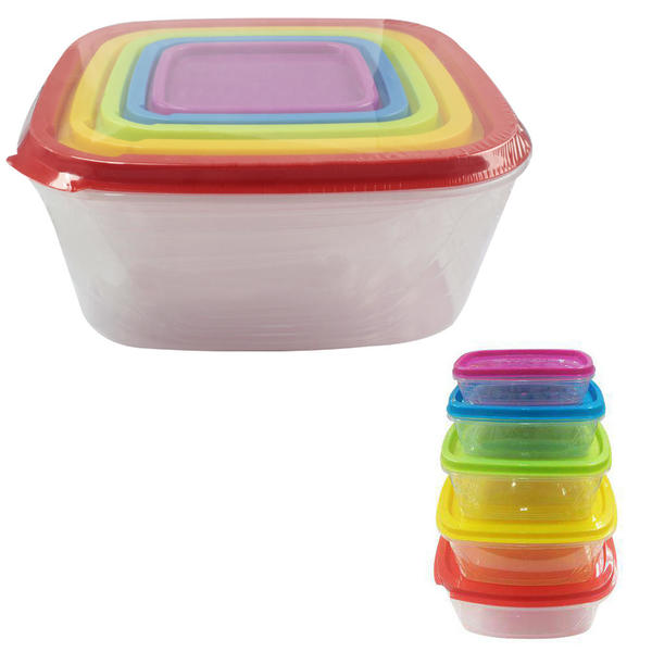 Kit com 5 Potes de Plástico com Tampas Coloridas